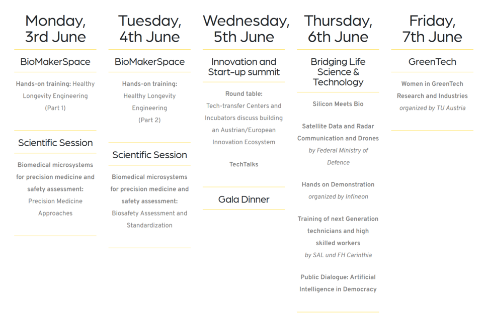 Zum ersten Mal schließen sich im Juni 2024 akademische und industrielle Partner, sowie Vertreter der Politik in Millstatt am See zusammen, um Themen wie Innovation, Biomedical Engineering, GreenTech oder Artificial Intelligence zu diskutieren.Das TechForum Millstatt zielt darauf ab, die wissenschaftliche und industrielle Wettbewerbsfähigkeit Europas zu stärken, indem es Österreichs Attraktivität für qualifizierte Arbeitskräfte erhöht, akademisch-industrielle Partnerschaften fördert und die Einbindung von Stakeholdern unterstützt. Zusätzlich zu Fachvorträgen, Präsentationen und Diskussionen bietet das TechForum verschiedene Networking- Veranstaltungen, um den Austausch von Ideen, translationale Forschung und die praktische Umsetzung von aktuellen Forschungsergebnissen und Innovationen zu fördern. Ein weiteres Highlight ist dabei der hands-on Workshop, über die Herstellung von Mikrofluidik und Biosensorik, Systemintegration sowie Biologie-Material-Interaktionen und Organ-on-a-Chip-Technologien.