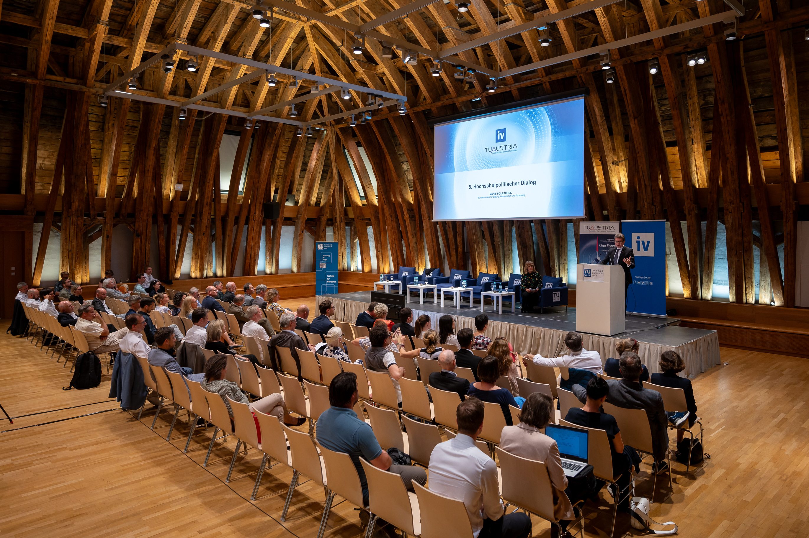 Der 5. Hochschulpolitische Dialog brachte deshalb Expert_innen aus Wissenschaft Industrie und Spin-offs im Kuppelsaal der TU Wien zusammen.