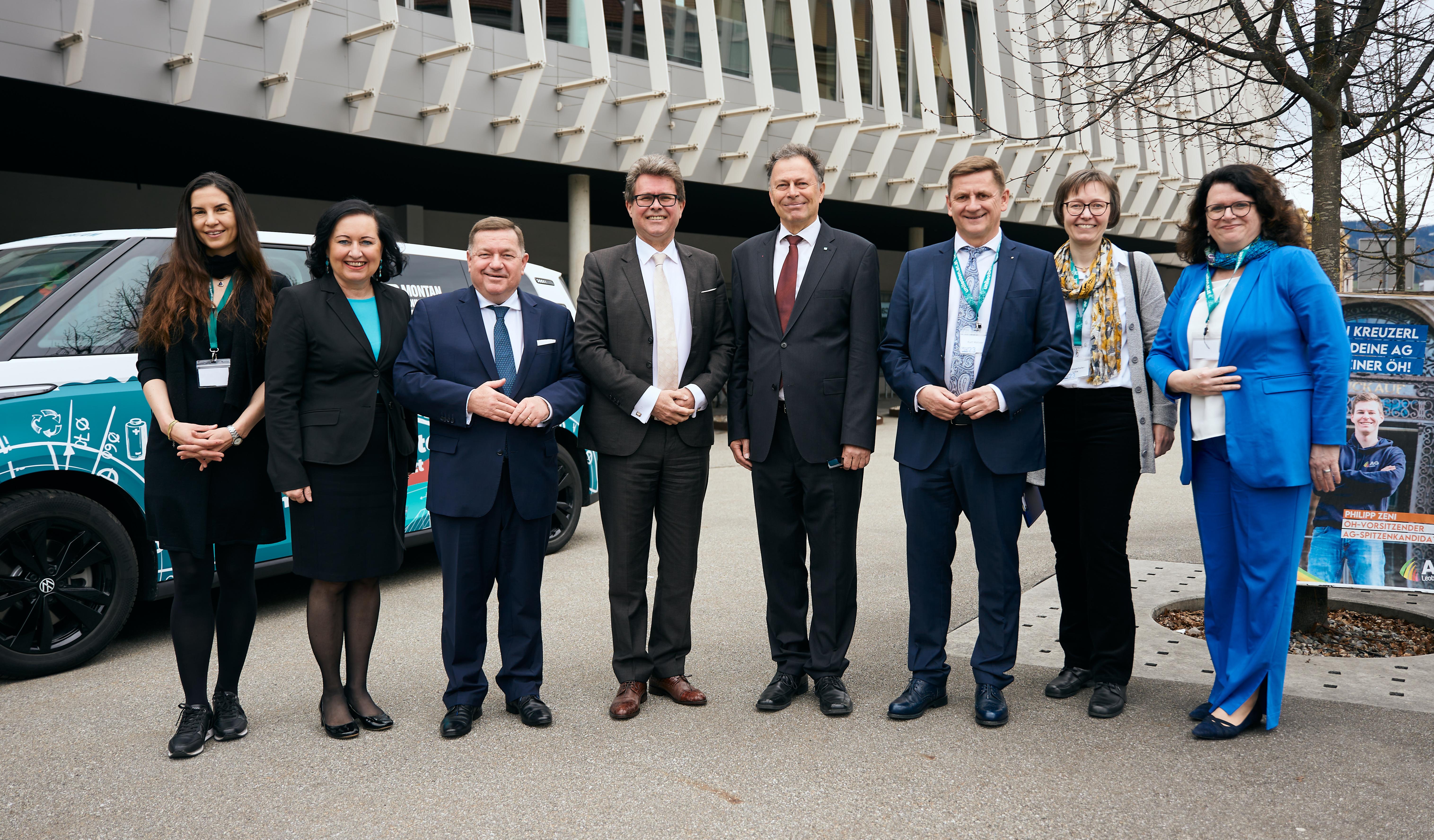Bei der Eröffnung des ersten MINT-Kongresses v.l.: Andrea Pichler (Bildungsdirektion Obersteiermark Ost), Elisabeth Meixner (Bildungsdirektorin), Landesrat Werner Amon, BM Martin Polaschek, MUL-Rektor Wilfried Eichlseder, Leobens Bürgermeister Kurt Wallner, Julia Mayerhofer-Lillie (MINT-Koordinatorin MUL), Sektionschefin Doris Wagner (Copyright: Raphael Nast)