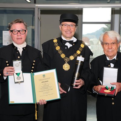 Rektor Wilfried Eichlseder (Mitte) mit Monsignore Dr. Markus Plöbst (li.) und Ehrensenator Dr. Horst Wiesinger (Foto Freisinger)Presseaussendungen TU Austria