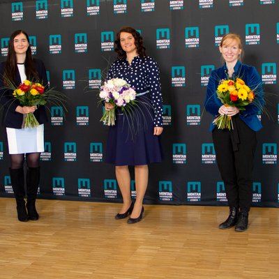 Bei der Verleihung am Weltfrauentag von links: Dr. Eva Wegerer, Anna Margarethe Paulik, BSc, Theresa Sattler, MSc, Priv.-Doz. Dr. Johanna Irrgeher und Vizerektorin Dr. Martha Mühlburger.