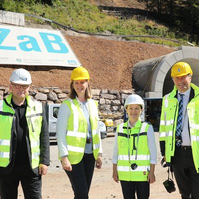 von li. nach re.: Univ.-Prof. Dipl.-Ing. Dr.mont. Robert Galler, Landesrätin MMag. Barbara Eibinger-Miedl, Vizerektorin Dipl.-Ing. Dr.mont. Martha Mühlburger, Rektor Univ.-Prof. Dipl.-Ing. Dr.techn. Dr.h.c. Wilfried Eichlseder