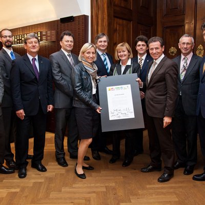v.l.: Siegfried Barones, Günter Zullus (Vizerektor Campus 02), Herbert Harb, Wilfried Eichlseder, Kristina Edlinger-Ploder, Josef Smolle, Christa Neuper, Robert Höldrich, Karlheinz Töchterle, Karl Peter Pfeiffer, Harald Kainz