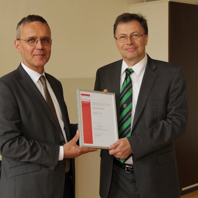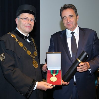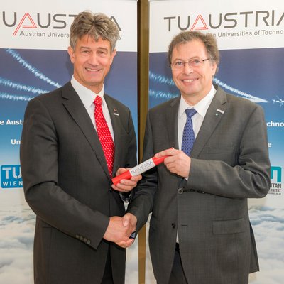 Staffelübergabe von Rektor Kainz (TU Graz) an Rektor Wilfried Eichlseder (Montanuniversität Leoben) Fotokennung: TU Wien