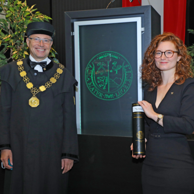 Communications & Partnership Managerin Mag.iur. Anna Voica und Vizerektor Univ.-Prof. Dr. Peter Moser