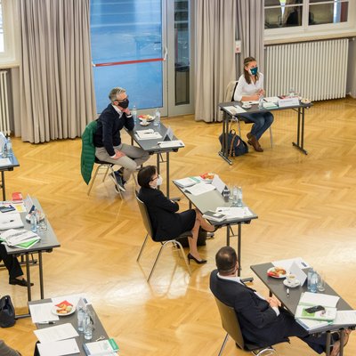 Übergabe der Schutzmasken an die Montanuniversität, v. l. Vizebürgermeister Alfred Maier und Bürgermeister Erich Ofner aus Kraubath mit Rektor Wilfried EichlsederPresseaussendungen TU Austria