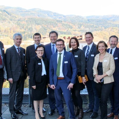 Bei der Eröffnung v.l.: Vizerektor Dr. Peter Moser, AMAG-Vorstand Dr. Helmut Kaufmann, Lehrstuhlleiter Univ.-Prof. Dr. Helmut Antrekowitsch, Rektor Wilfried Eichlseder, Gemeinderätin Margit Keshmiri, Abgeordneter zum Nationalrat Andreas Kühberger, Mag. Brigitte Bednar (FFG), Dr. Andreas Geisler (FFG), Prof. Dr. Christian Liebscher (Max-Planck-Institut für Eisenforschung), vorne: Vizerektorin Dr. Martha Mühlburger, assoz.Prof. Dr. Stefan Pogatscher (Copyright Montanuniversität Leoben)