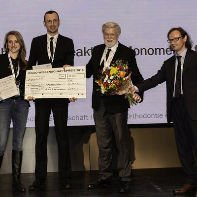 v.l.n.r: Delara Hartmann, Assoz. Prof. Dr. Thomas Grießer, Prof. em. Dr. Rainer-Reginald Miethke (Berlin), Siegfried Sonnenberg, (Stuttgart, Leiter der Geschäftsstelle der DGAO)