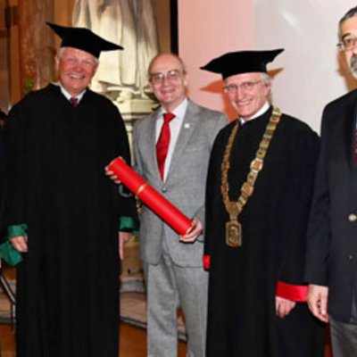 v.l.n.r.: Anna Steiger, Vizerektorin für Personal und Gender, Johannes Fröhlich, Vizerektor für Forschung, Paul Jankowitsch, Vizerektor für Finanzen, Adalbert Prechtl, Vizerektor für Lehre
